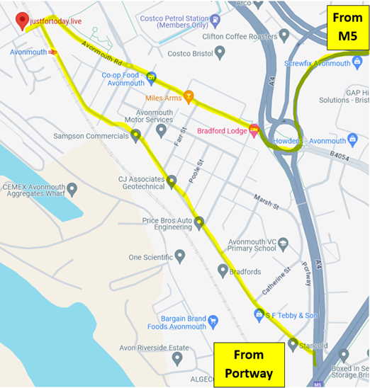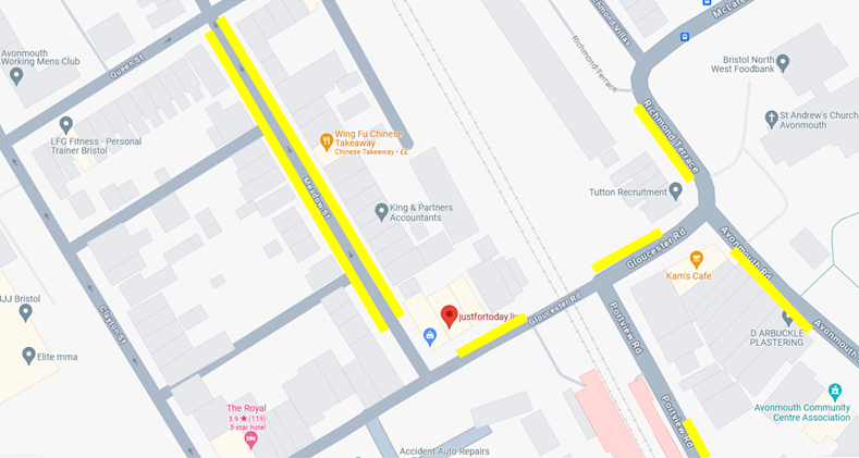The treatment room is on the right and has a blue door. It is between Avonmouth Paints and Aunty Sue’s café. Please see below for places to park.